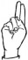 На ћирилици написано МАША ТРЕШЊИЋ састоји се из 11 слова [?]. Исписано ћириличном једноручном азбуком за глувонеме: